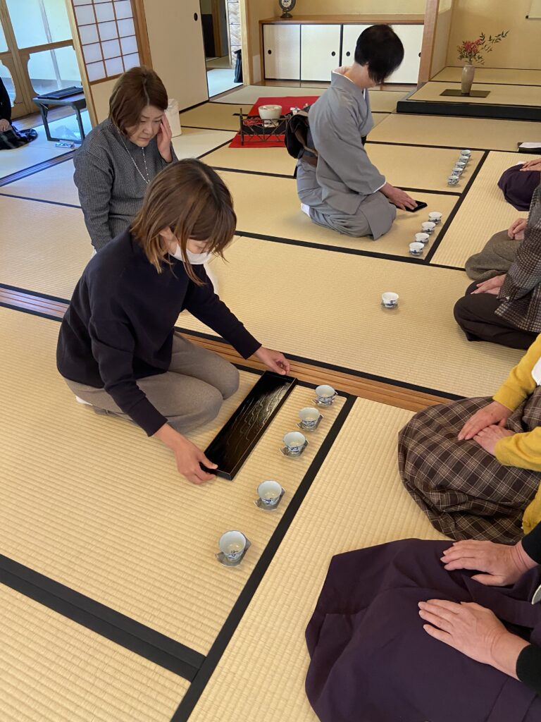 今後茶会などで今日の勉強会が参考になることを願って!後半は大盆煎茶点前を茶会形式で行ない、本日の勉強の成果を確認する事が出来ました。