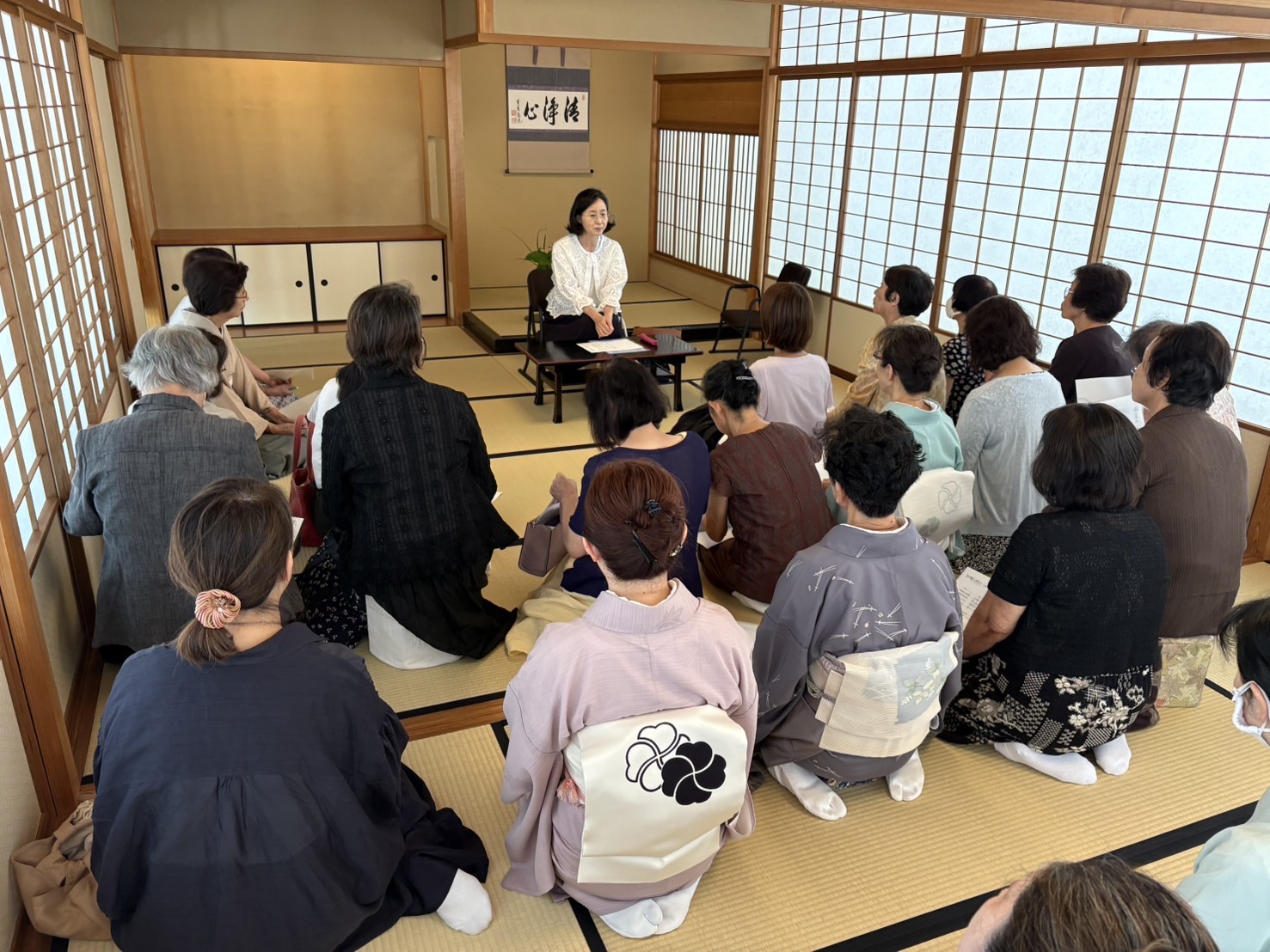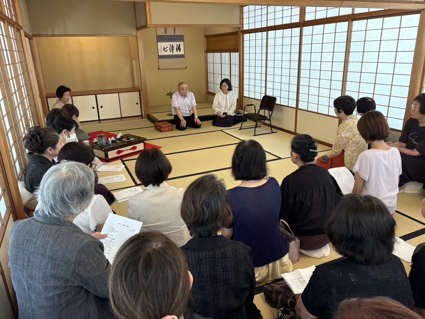 令和7年度総会が四日市市泗翠庵で行われました。総会後には点台冷煎にてお家元ご夫妻とご一緒に一煎をいただきました。当日は四日市も朝から厳しい暑さでしたが、大勢の会員の方々に参加頂き冷煎の美味しさが一層増したように感じました。