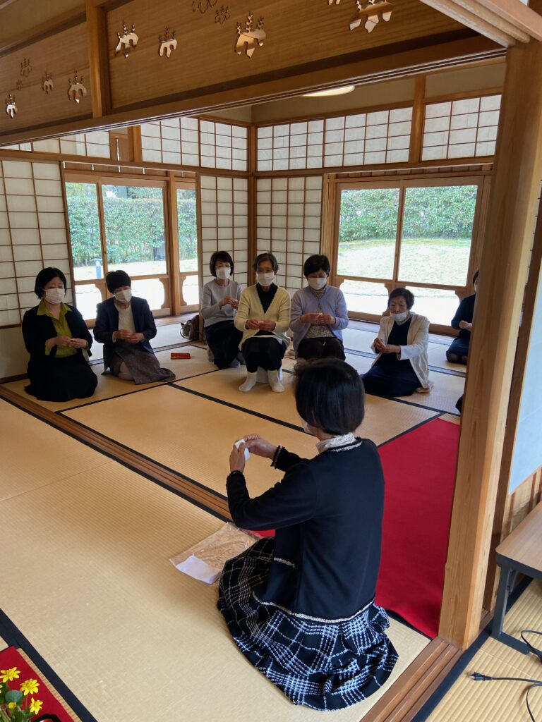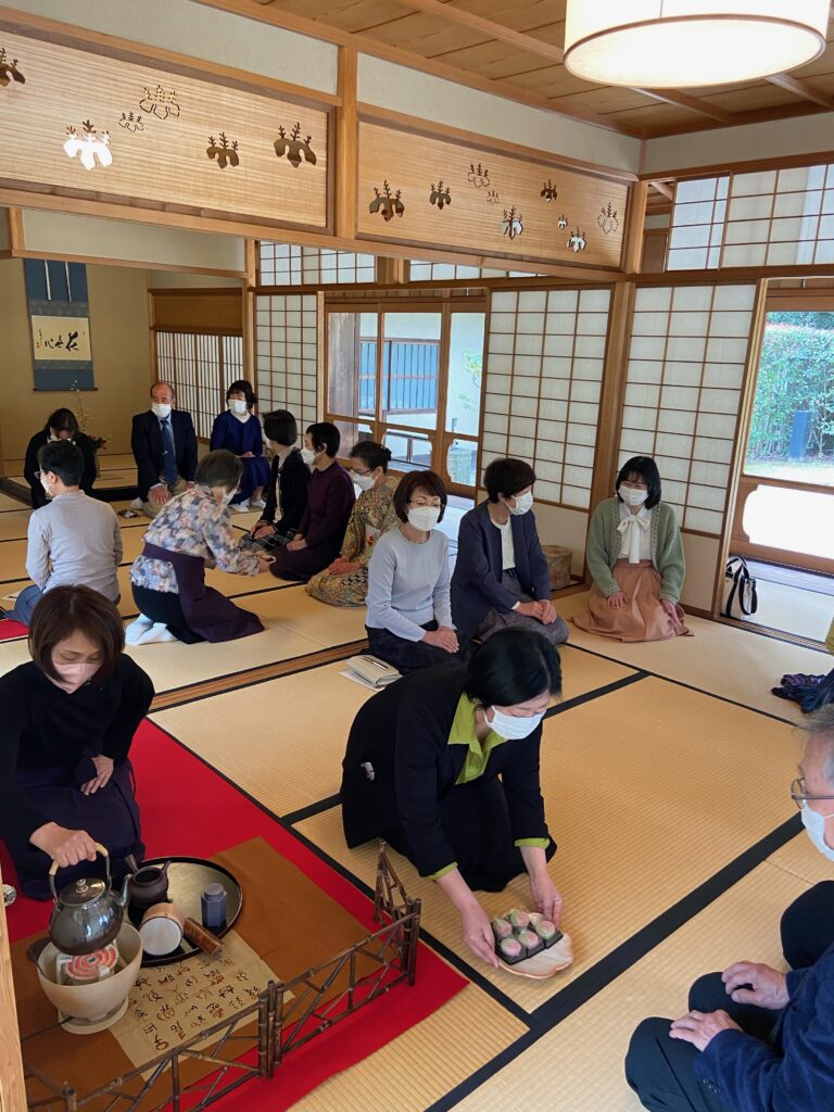 第二回勉強会を二十二名の参加で開催しました。今回は一般会員が十一名の参加と、役員の呼び掛けで多数集まりました。「大盆番茶」点前を久しぶりに体験して、煎茶席の雰囲気、道具の扱い方等、再確認です。近況報告等話し合い、次回につなげる話の中で無事に終える事ができました。