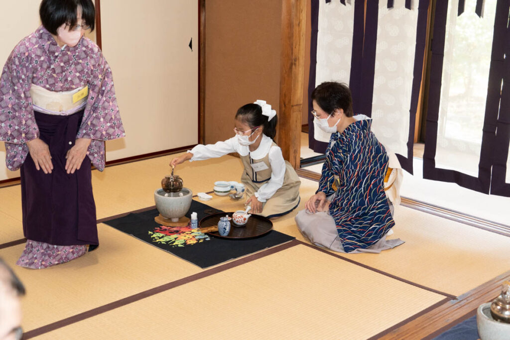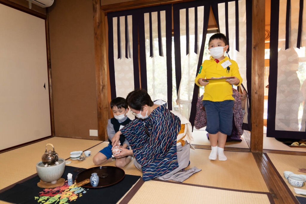 夏休みの頃は、小さなおぼつかない手でしたが、上達の早さには、目を見張るものがありました。今日の発表会では、扱っていた急須で、上手に淹れることができるようになりました。緊張したお顔も、お点前を終えると、満面の笑み。自信に満ち溢れていました。