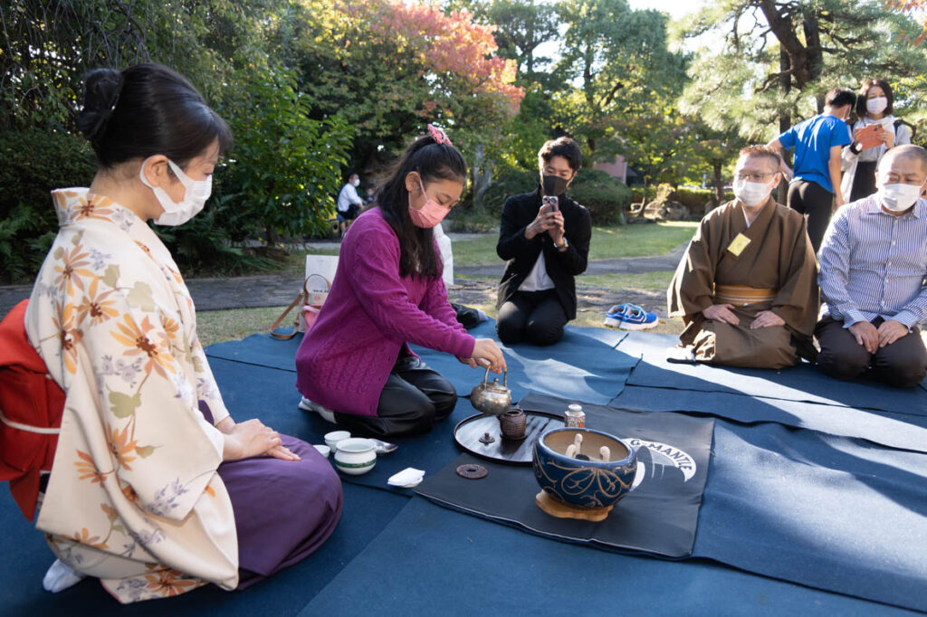 小春日和な陽射しのもと、美味しいお茶になるようにと心をこめてお点前をして淹れたお茶。お客様に「ご名煎です!」とお褒めの言葉をかけてもらい、はにかんでいる姿が印象的でした。