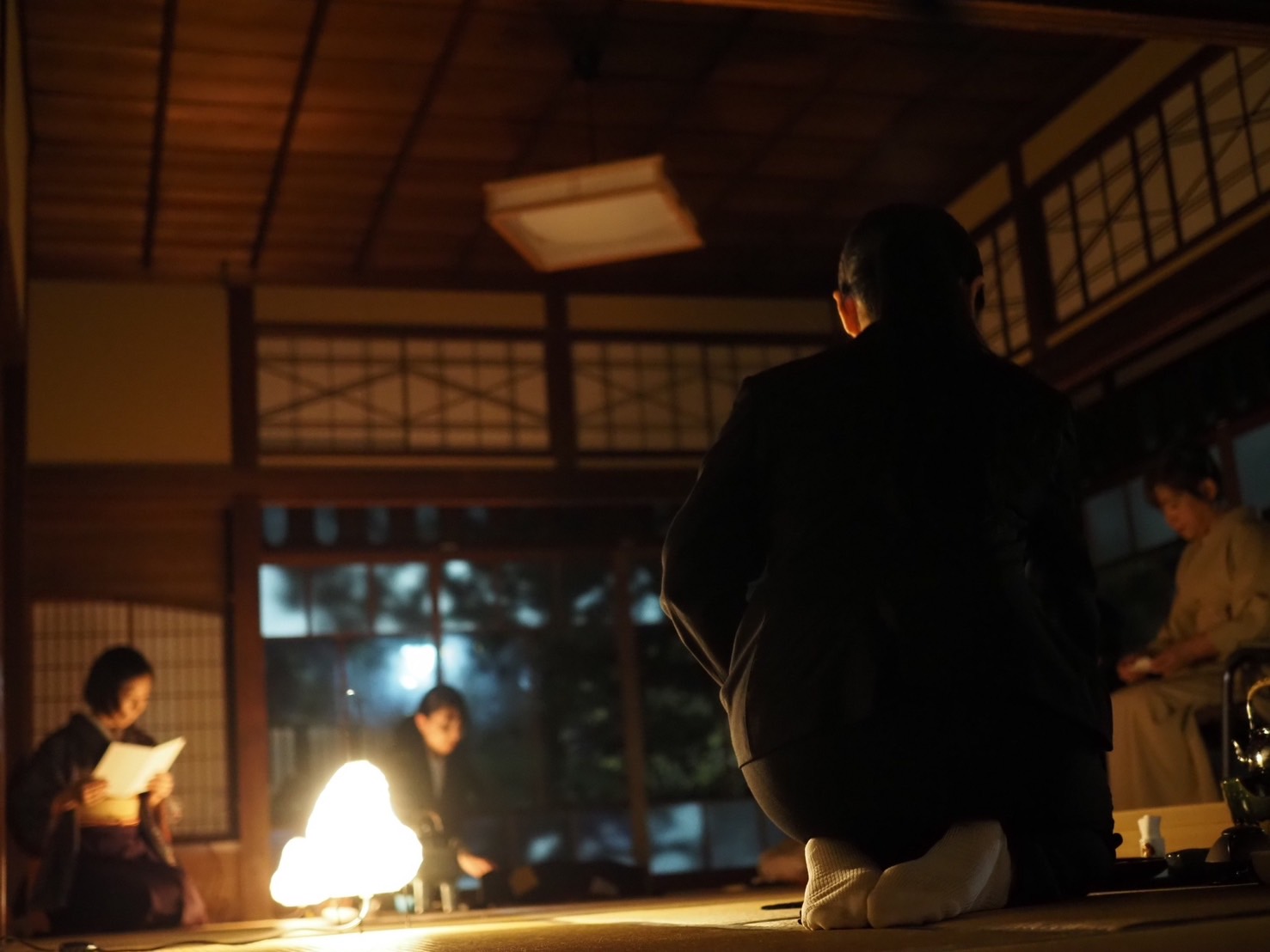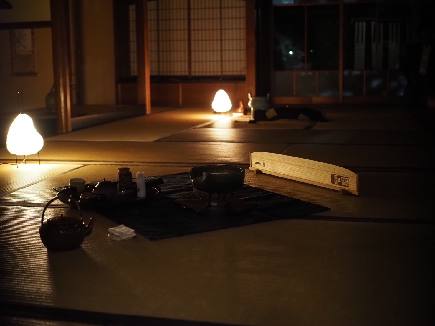 11月17日の夜、鶴舞公園鶴々亭にて、お茶会を開催いたしました。夜分遅くにもかかわらず、大学の同級生や鶴舞公園の職員の方々をはじめ、様々なお客様にお越しいただき、誠にありがとうございました。夜の静けさと暗がりにつつまれた空間でいただくお茶を通じて、煎茶の魅力が少しでも伝わっていれば幸いです。