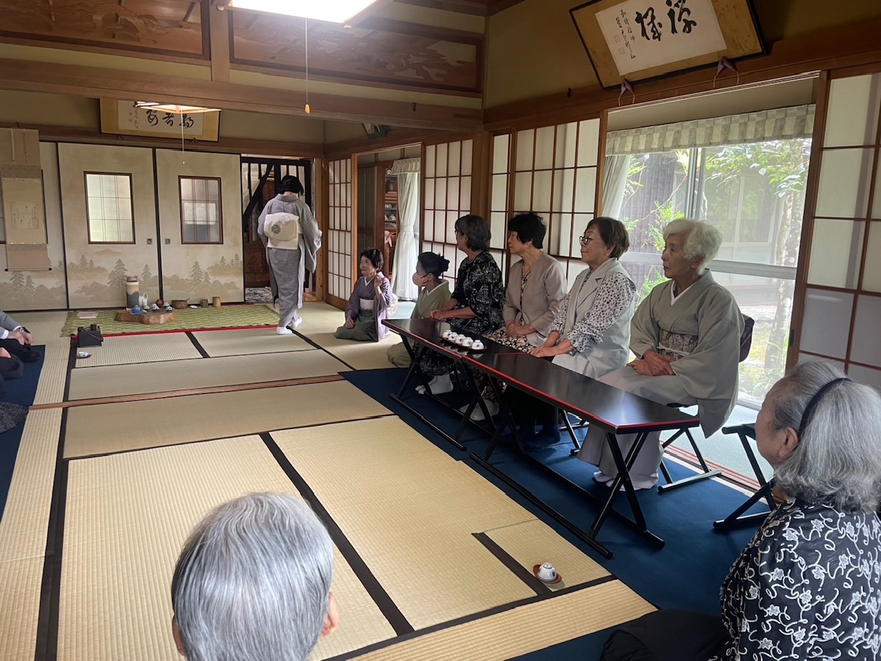 今年度の支部総会は走り梅雨でお足元の悪い中、お家元、奥様ご臨席の上、前支部長の山上邸にて開かれました。