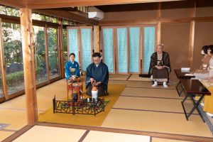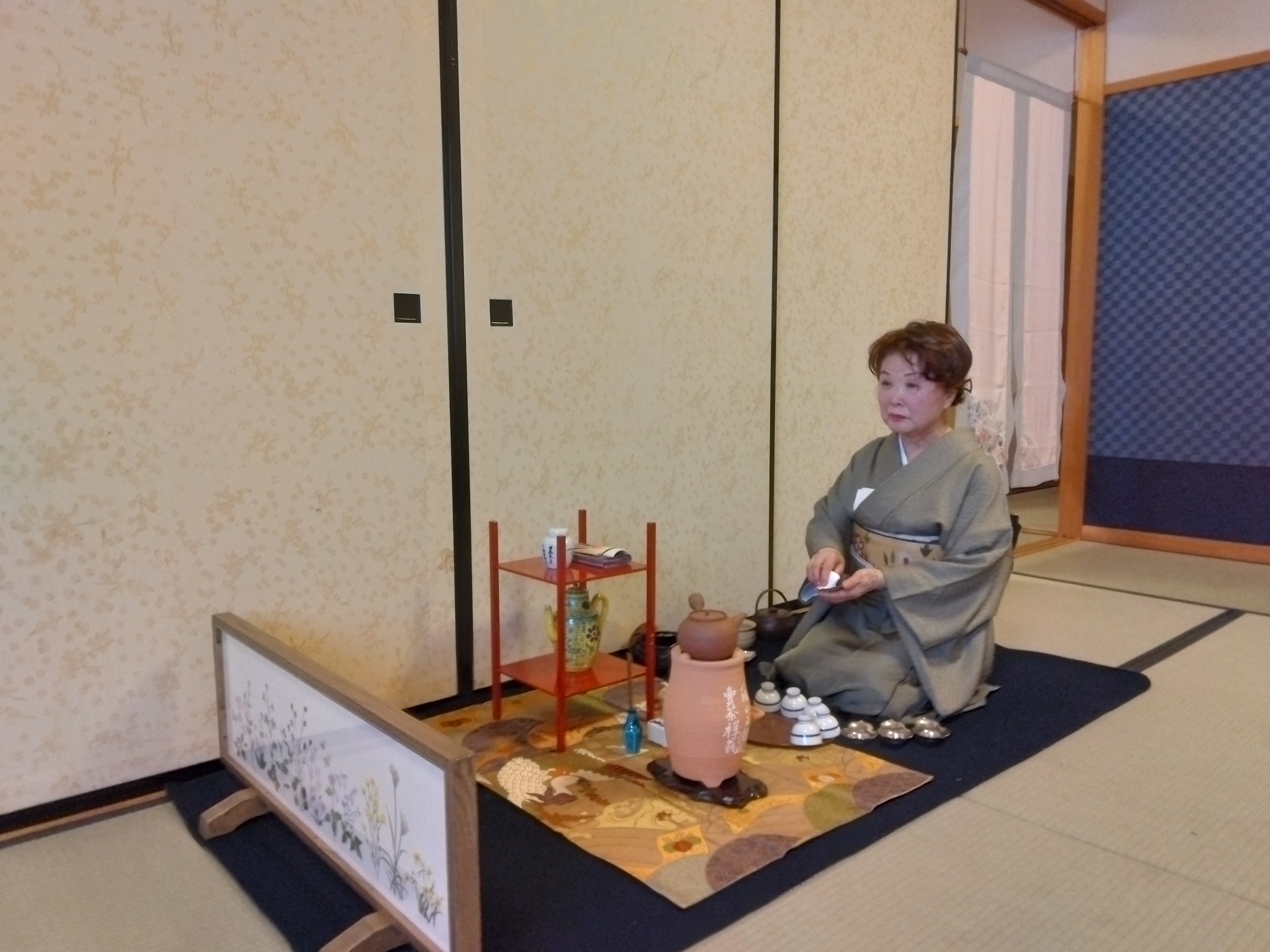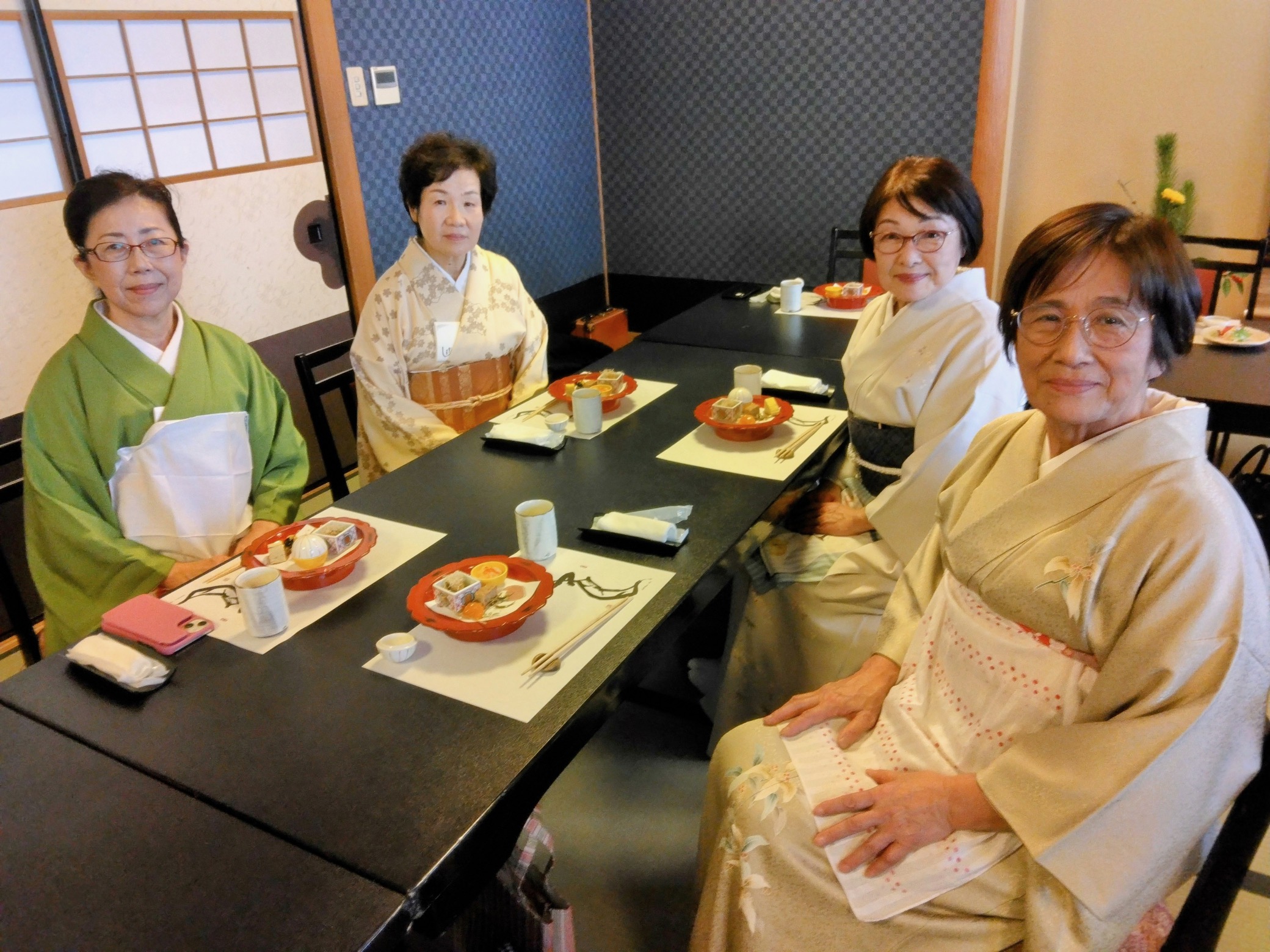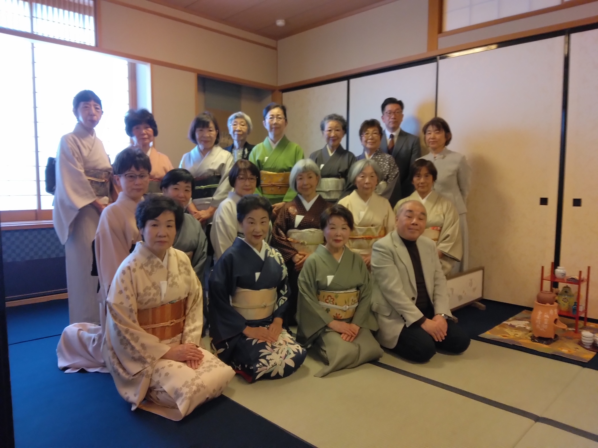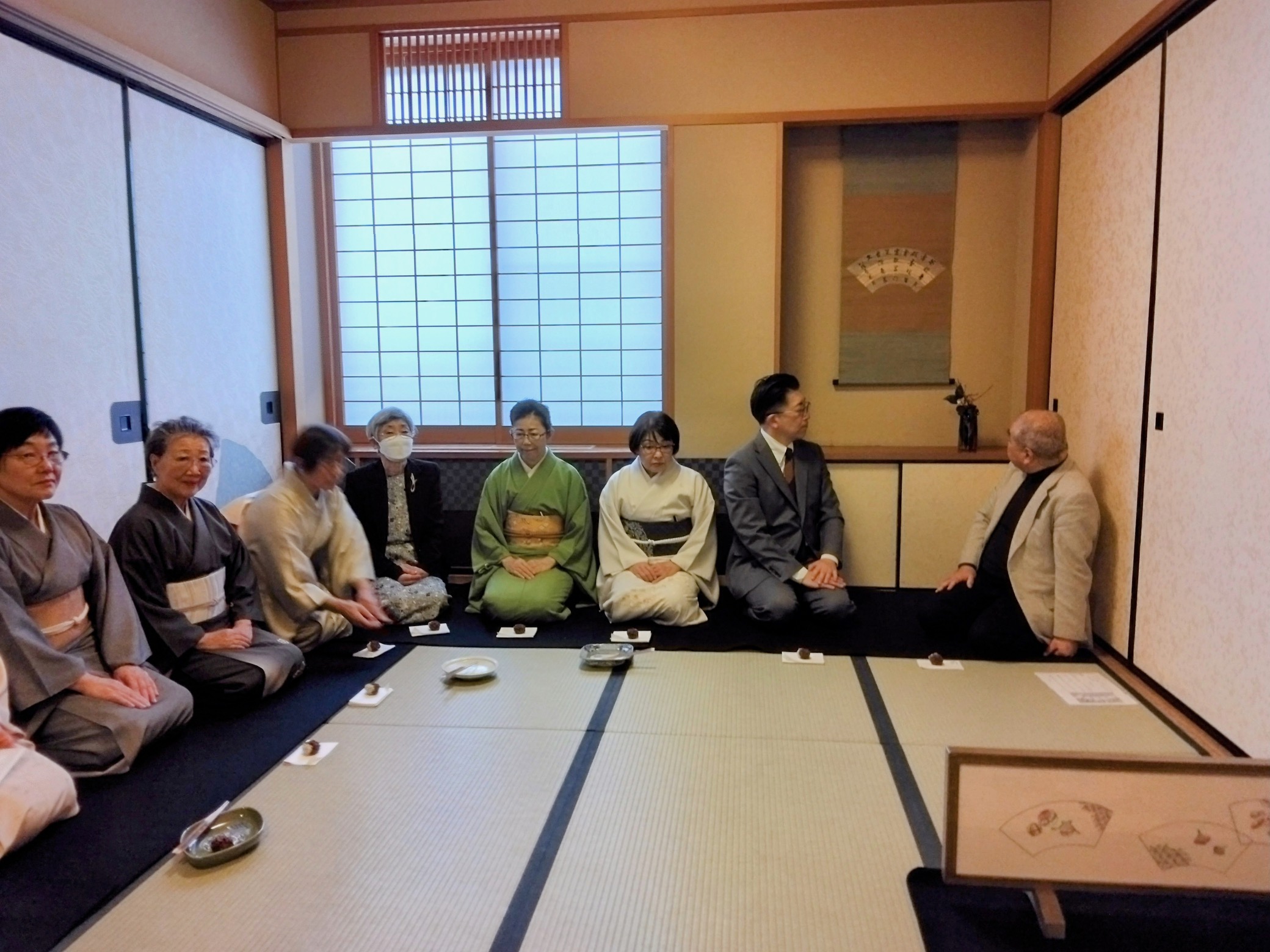 岐阜 大垣中日文化センター初煎会 令和7年1月8日 2025年1月11日 最終更新日時 : 2025年1月11日 kouetusousha 1月にしては穏やかな天候に恵まれた1月8日お家元様をお迎えして《天近》にて初煎会を開催致しました。掛軸は八橋売茶翁の時季の漢詩、お花入は永楽即全に蠟梅、南天、白椿でした。お家元様より城山月次茶会のお話など楽しく伺い乍ら、纐纈先生が売茶棚のお点前をされました。生徒さんが作られた四季の 花々を刺繍した炉屏がとても華やかでした。お菓子の《冬日向》はキントンで、別室に移りお食事となり、今年初めてのお茶会は盛会のうちに終了致しました。お家元の煙雲茶会でお会いする事を楽しみにお別れ致しました。 岐阜県支部、鈴木敬仙窟