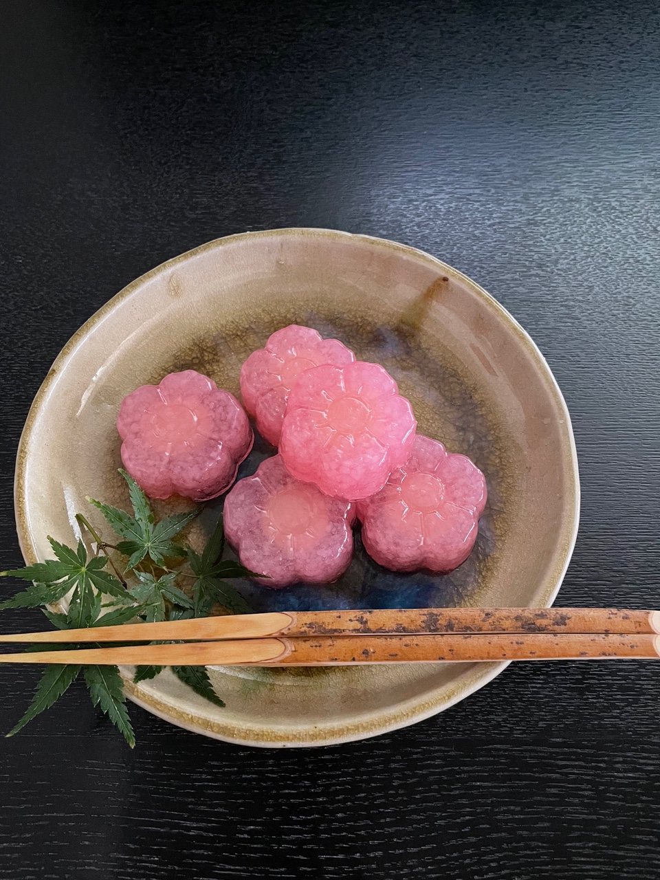 お菓子は虎屋の花桔梗、ばいこう堂の和三盆を。