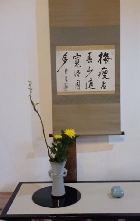 令和4年10月2日 尾張津島秋祭の一日、しばらくお休みをしていた町家の蔵を改造した「ギャラリー」でミニ茶会を開催しました。当日は、大盆の煎茶点前でおなじみの煎茶を淹れました。旨味成分と渋み成分のバランスの取れたすっきりした味と程よいお湯の温度が煎茶のおいしさだと思います。