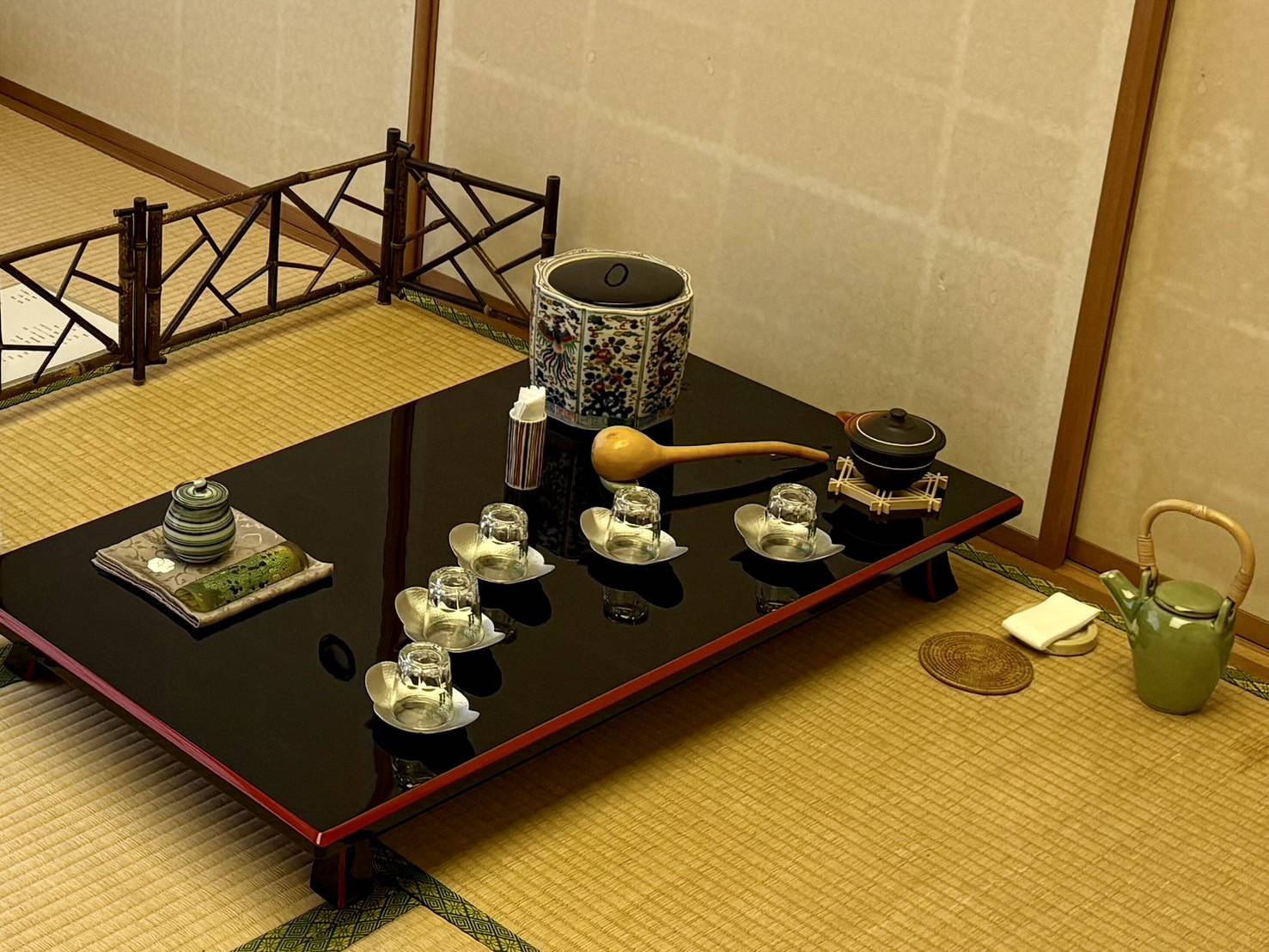 今回は浴衣茶会。テーマは「夏の竹林」暑い夏に涼しさを感じさせてくれる場所をイメージしてみました。家族と友人を招き冷煎を披露、教室の子供たちもお運びに参加してくれて楽しいお茶会になりました。
