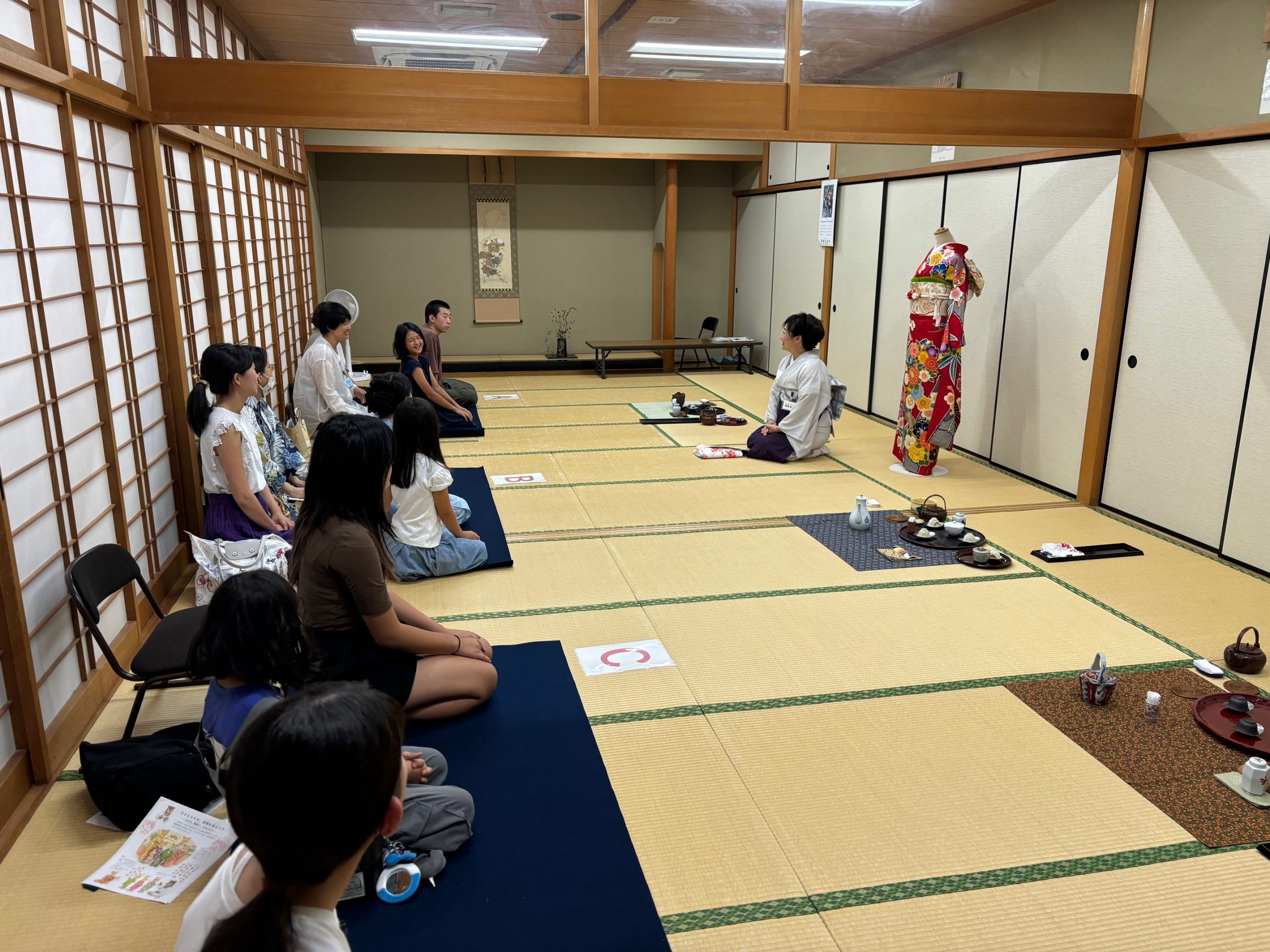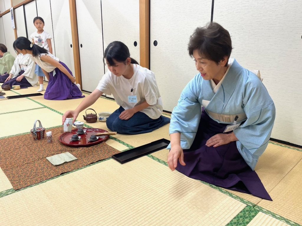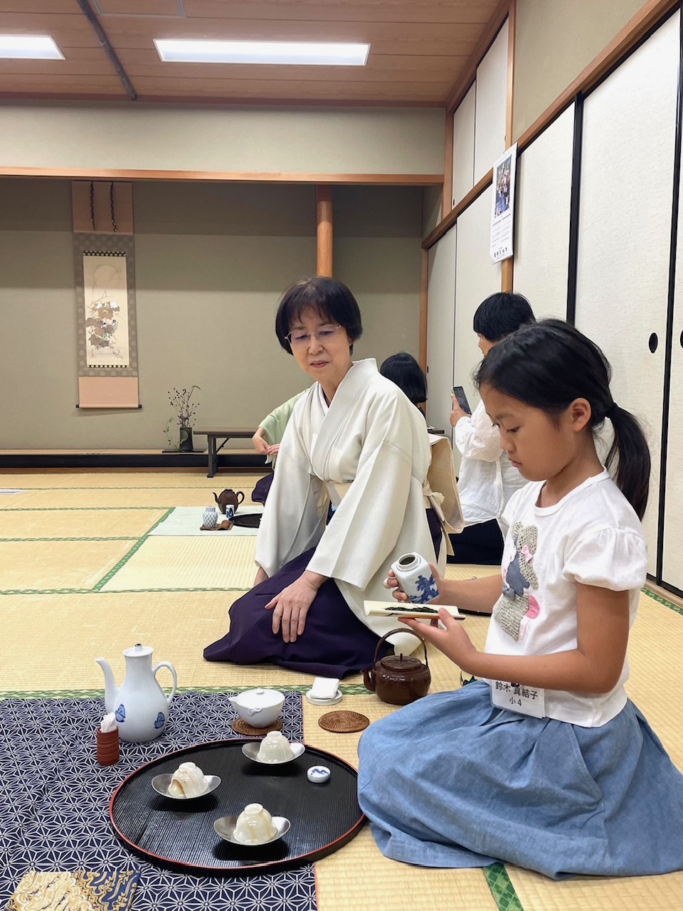 知多地区 煎茶道親子教室 第五回 8月24日 2024年8月30日 最終更新日時 : 2024年8月30日 kouetusousha 第五回のお教室は 次回の発表会を想定したリハーサル的なお稽古の日でした。まずはじめに 「伝統文化と着物」について間瀬桂子さんに ミニ講演をしていただきました。この日は 浴衣姿の親子もおいでになりましたので興味深いお話になりました。お菓子は「月うさぎ」それにあわせて 中秋の名月を想定したしつらえにしてみました。