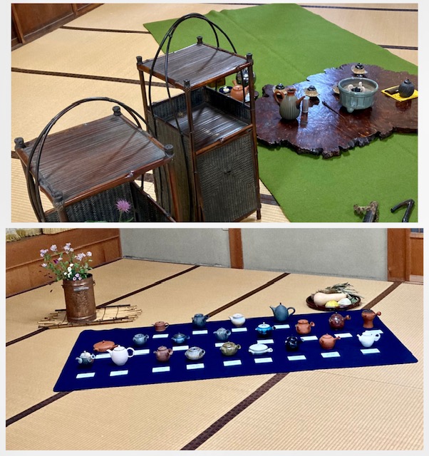 茶席の数々のステキなお道具に加え、常滑焼作家さんの急須の展示コーナーも作られ