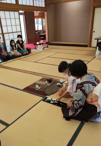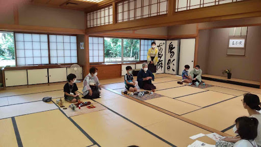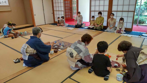 子供が作ったお茶をお母さんがお運びをし、皆思った以上に真剣にお茶に取り組んでいました。皆もう一度やりたいということで、3人が2回目をしましたが、時間がなくなり、お母さんの中にお稽古をしたい人もいたのですが、今回はお点前できませんでした。最後にもう一度お軸とお花の説明をして終了しました。
