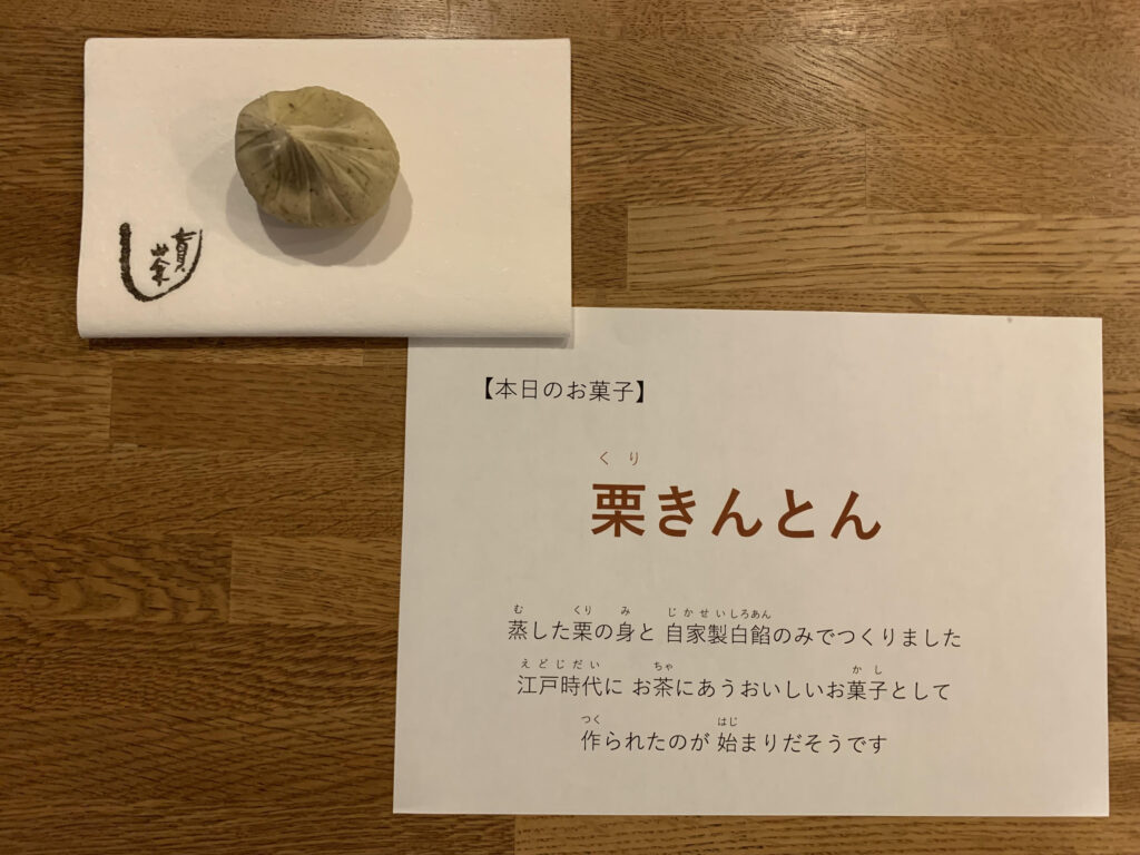 お道具の丁寧な扱いを意識しながらお点前のお稽古をして、おかあさま方には 第一童子のお稽古をしていただきました。