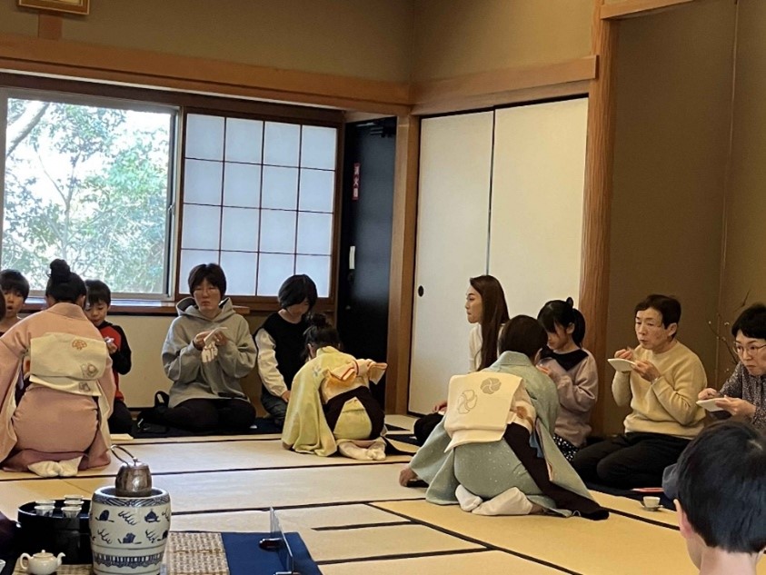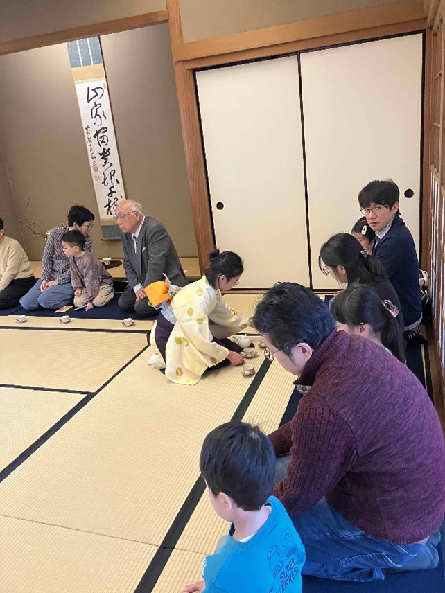 豊橋文化財団月釜 令和7年3月2日 2025年3月17日 最終更新日時 : 2025年3月17日 kouetusousha 2日は少し暖かくなり、茶会日和で多数のお客様がお出かけくださいました。 床の間は、黄檗47代直翁筆「山家富貴銀千樹」の軸に、唐物の海鼠釉の壷に木瓜、椿を入れ、お菓子は雛祭りに因み「引千切」を。最後の八席目は、伝統文化親子教室に参加した子供たちにお運びを、他の親子には寄り付き、茶席を体験していただきました。社中ともに、和やかな春の一日となりました。 東三河支部 岩瀬尚仙窟