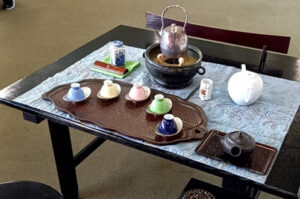 当日は、先生方のお力をお借りし、 金城祭にふさわしいお席をつくることができました。 茗碗は、黄色と緑色のとても可愛らしい京焼の作品でした。